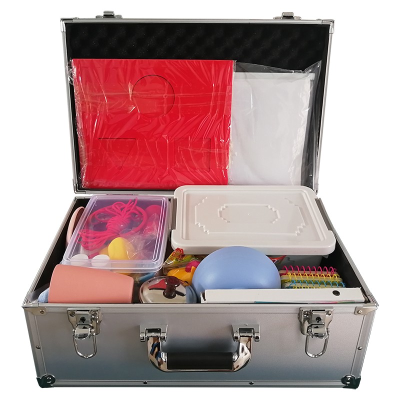 手握鈴鐺、小鈴鐺、花鈴棒、撥浪鼓、小沙錘、捏捏響玩具、玩具小椅子、拖拉玩具(帶線)、小正方體積木(紅12個,黃藍綠各2塊)、可拆卸娃娃、布娃娃、圓環(huán)、紅球、大球、紅毛絨球、籃球、紅色小球、細繩、不銹鋼口杯、塑料杯、大號塑料藥瓶、小號塑料藥瓶、餐具套裝、大小方巾、方形鏡子、大木珠(帶孔)、小木珠(帶孔、)黃方珠子、塑料方盒、塑料圓盒、油畫棒、指揮棒、黃色鉛筆、秒表、手電筒、小鬧鐘、電燈開關、頭圍尺、軟尺、木釘板、多孔型板(含圓形、方形、三角形各4塊)、幾何嵌板(含圓、三角、方形,厚8mm)、小人書識圖卡(果蔬、人物、動物、交通等)、粉色卡紙、手帕紙、鐘表圖1234、圖畫12(BSID)、BSID采集表、BSID使用手冊、整理箱等。